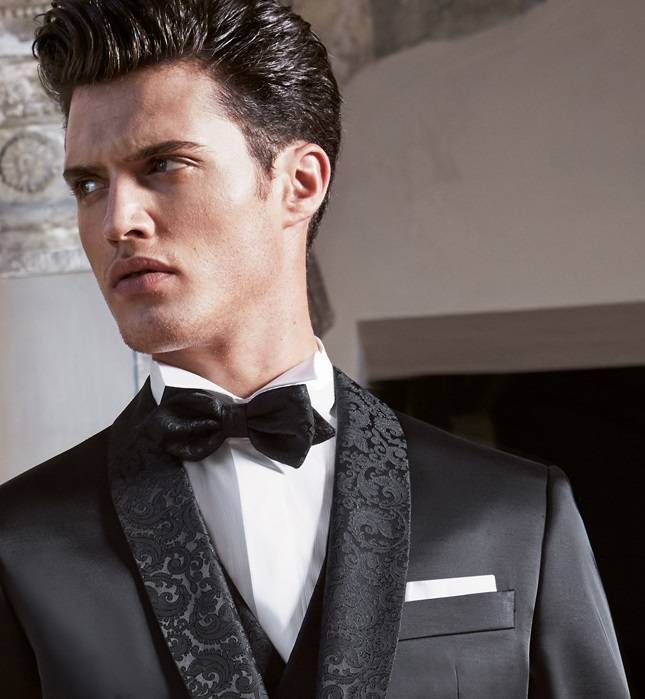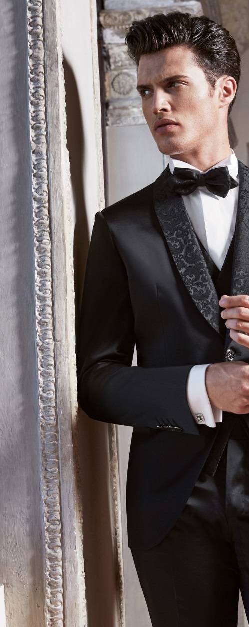 Lubiam une marque originale milanaise fondée en 1911 centenaire, spécialiste du costume de marié ajusté et cintré, veste un bouton pantalon slim, gilet avec grand décolleté trois boutons, ce smoking bleu gris se porte avec une cravate ou nœud papillonsur mesures dans le tissu du costume. Vous pourrez accessoiriser ce smoking avec des chaussures vernies bleu nuit et sa ceinture assortie.