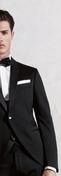 les tissus de smoking Lubiam Cérémonia sont réalisés dans de beaux tissus italien reconnus comme Marzotto Cerruti ou autres. le smoking lubiam est disponible dans le coloris bleu encre, veste col châle gilet décolleté à l'italienne possibilité de coordonner la veste avec une cravalière ou un nœud papillon assortis.