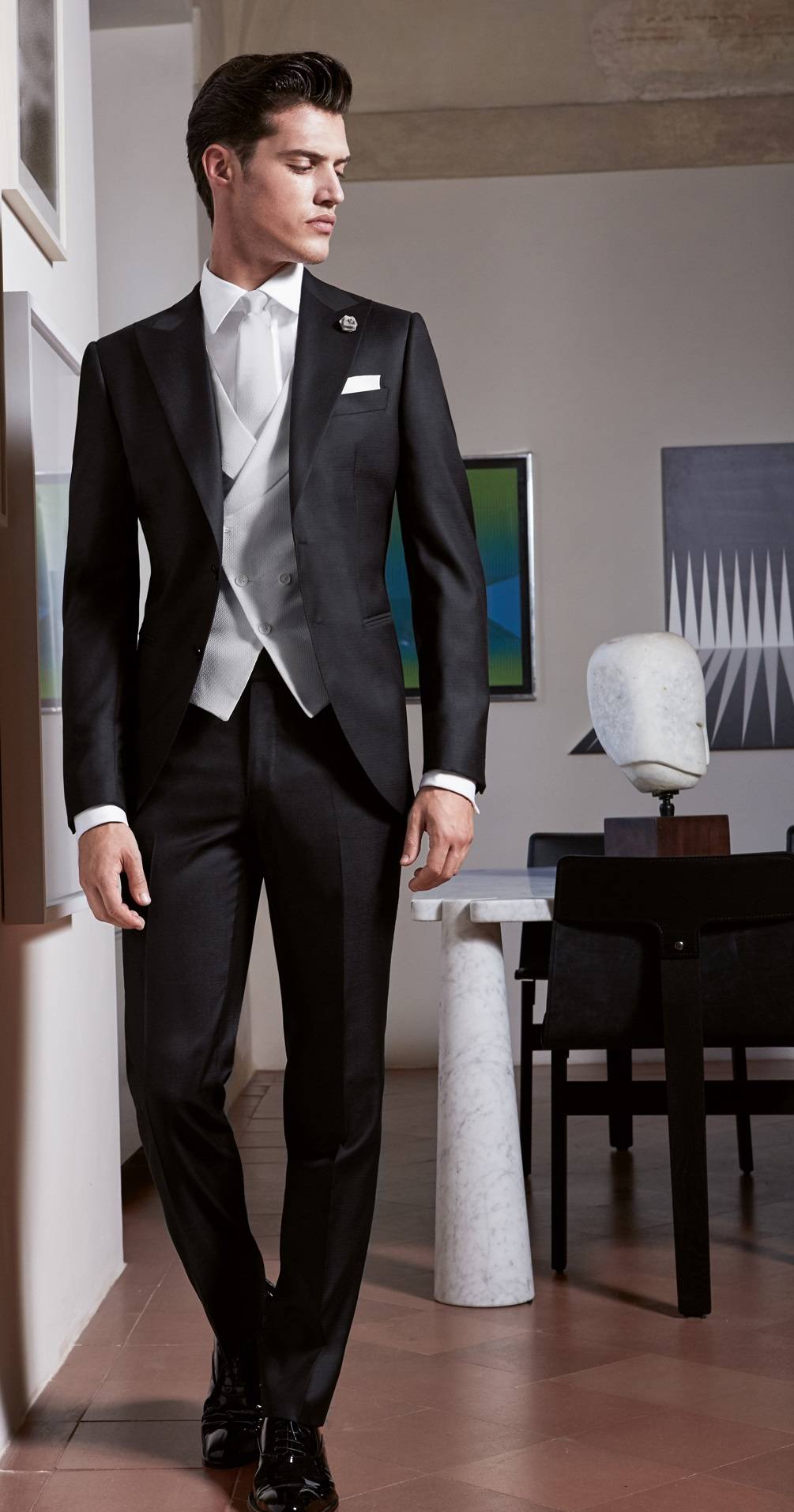 Vous pouvez aussi découvrir d'autres collections de costumes de mariage : Lubiam 1911 cérémonia, Camiliano, accessoires grège pour les gilets et cravatone, chemise col cassé grège en satin de coton, Angélotoma pour les smoking italiens, Javier arnaiz et Disfra marque française pour des costumes de ville plus simples, chaussures Araxo vernies micro dessin et chaussures et ceintures marrons assorties aux smokings bleu nuit.